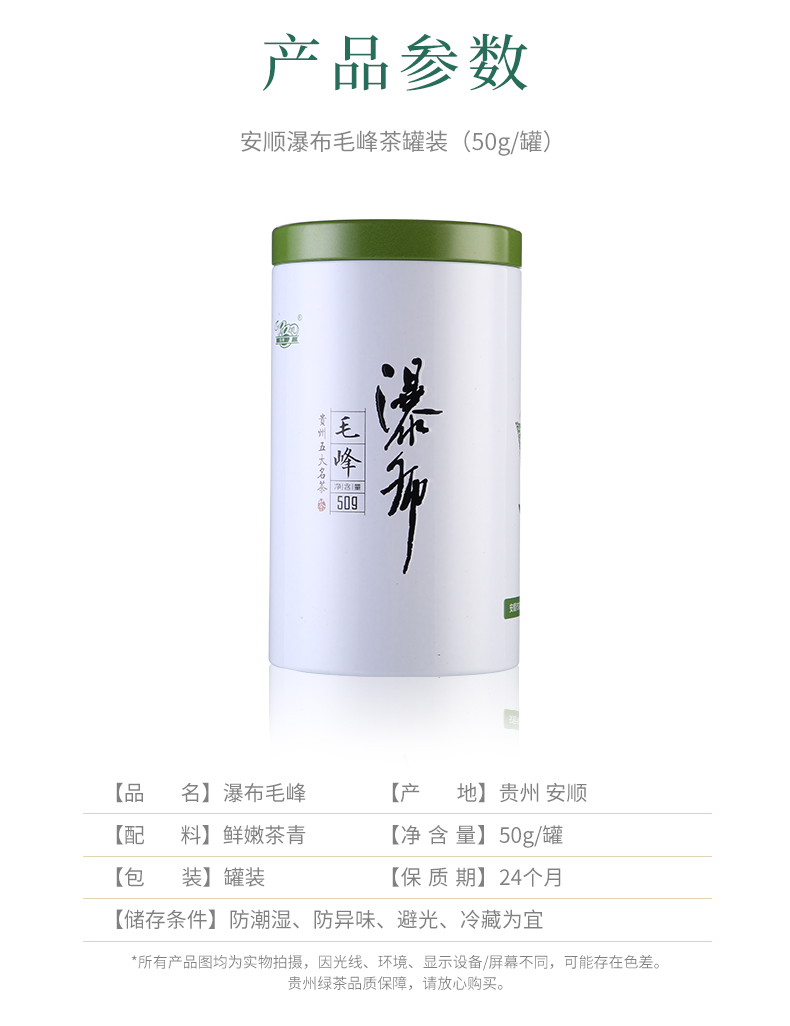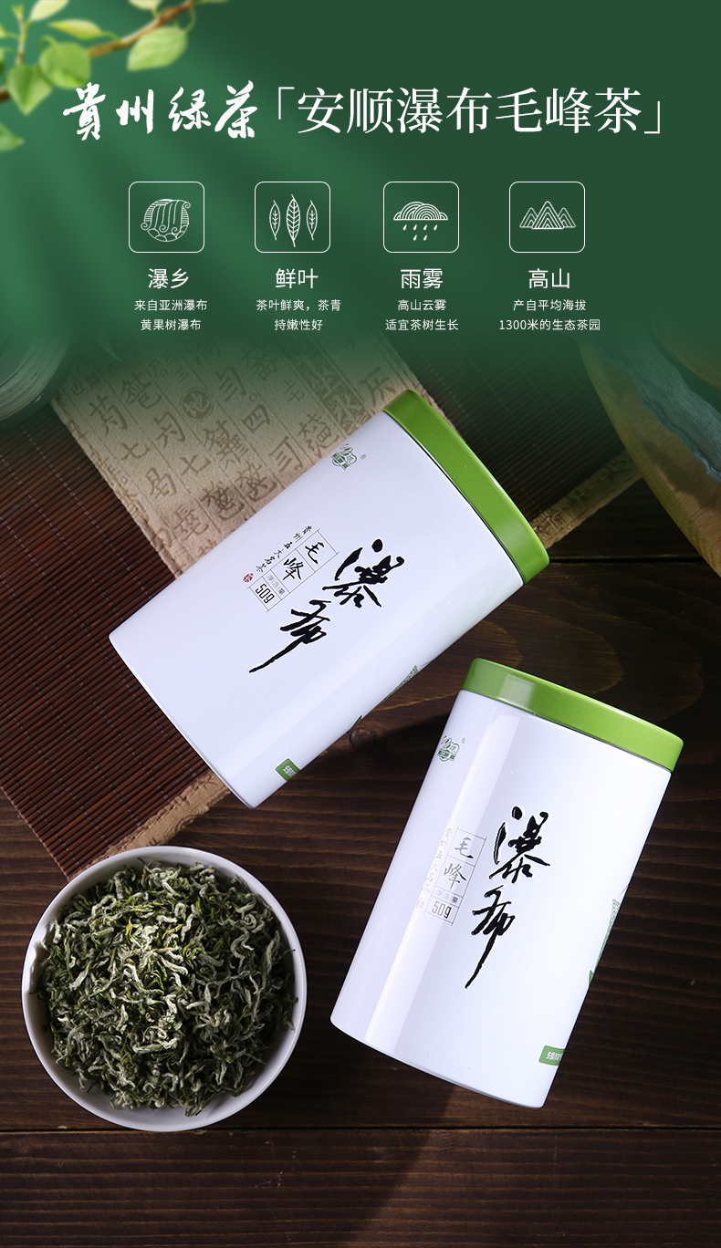 贵州绿茶 安顺瀑布茶 办公茶2021新茶 特级毛峰50克罐装