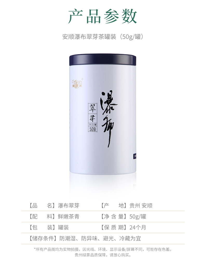 贵州绿茶 安顺瀑布茶 办公茶2021新茶 特级翠芽50g罐装