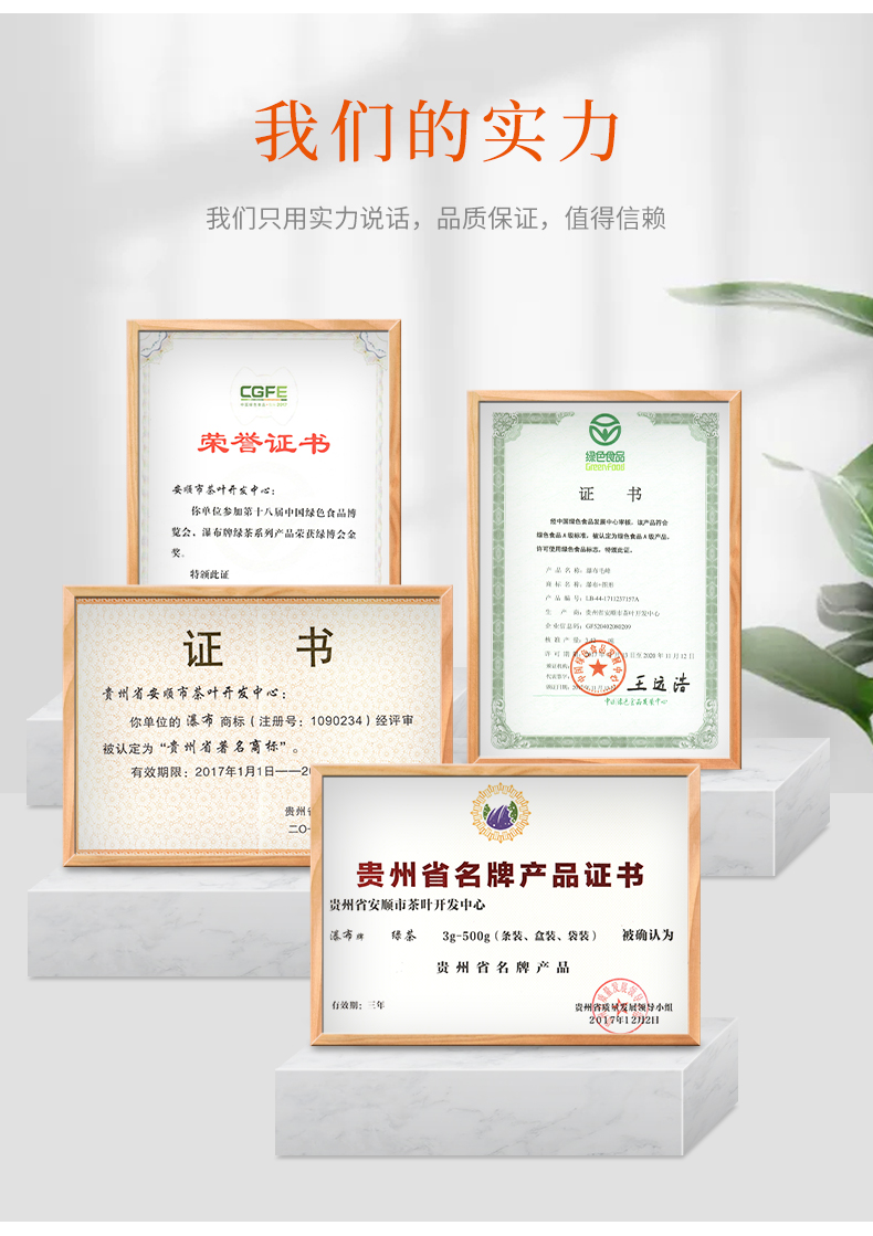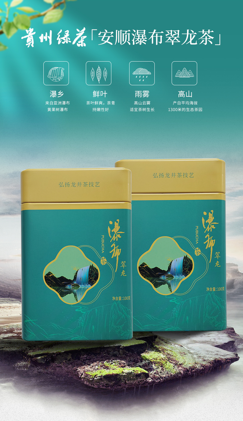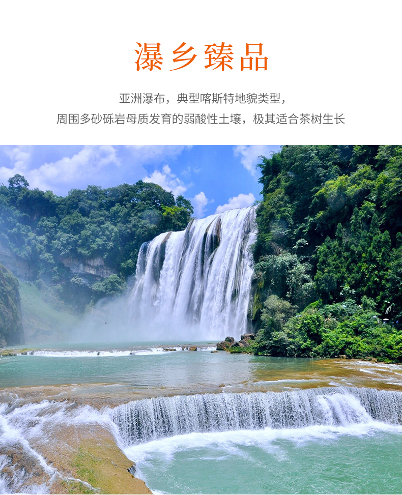 瀑布茶品牌是安顺市人民政府主打茶叶品牌,省级重点打造区域公共品牌,属贵州五大名茶,先后获得获“中国农产品区域公用品牌”、“贵州省著名商标”、“贵州省名牌产品”等荣誉称号。近年来,在各级部门大力推动下,瀑布茶品牌不断发展壮大。截止目前,现有瀑布茶品牌加盟企业23家,辐射茶园面积200000余亩,其中绿色食品认证茶园基地面积7000余亩,有机食品认证基地面积2500亩。拥有“瀑布毛峰”、“瀑布翠芽”、“瀑布红茶”、“瀑布翠龙”等产品,多次获得“中绿杯”、“中茶杯”、“华茗杯”等大奖;分别荣获第14届中国国际农产品交易会金奖、第18届中国绿色食品博览会金奖、“黄山杯”首届全国传统名茶产品质量特别金奖、安顺十大旅游商品等殊荣及称号。