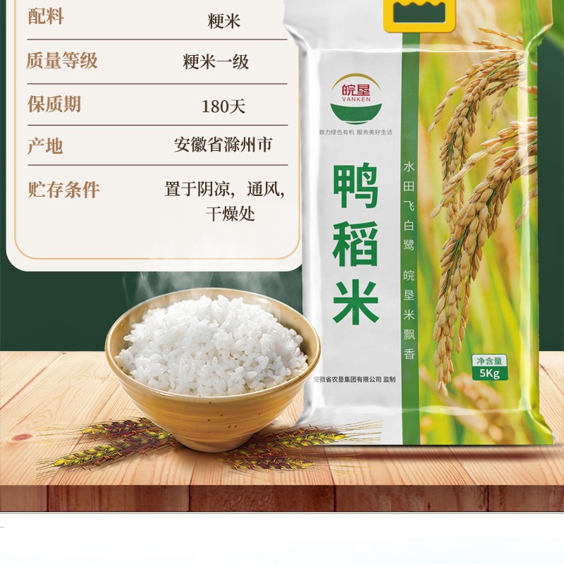 皖垦鸭稻米大米5kg新米圆粒珍珠米粳米生态鸭田稻米真空包装