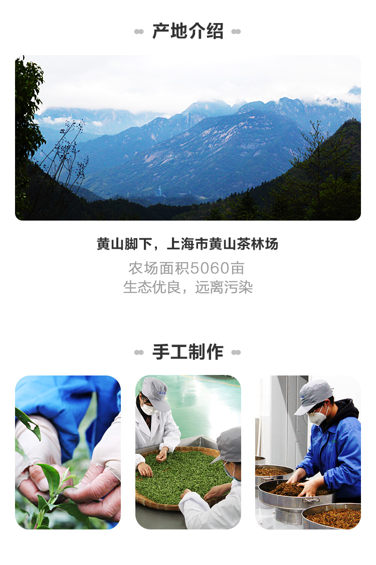 上海市黄山茶林场成立于1965年10月,坐落在安徽省黄山市黄山区谭家桥镇境内,距黄山屯溪国际机场、高铁黄山北站约40分钟车程,紧临国道G205、S103省道和G3京台高速(合铜黄高速公路),位于黄山风景区东大门,占地约5060亩,现隶属于光明食品集团旗下资管公司管理,是光明食品集团的职工疗休养基地,拥有黄山农场派出所、社区、居委会、医院等相关配套。上世纪六七十年代,数万名上海知青曾在这里“上山下乡”,留下了“安徽小上?!钡拿烙S胁柙?00亩,水稻田270亩,油茶林1310亩,竹林800亩。专营“黄山牌”“茶林场牌”茶叶及特色农产品。与上海财经大学、上海工程技术大学、华东理工大学及安徽农业大学等在农业和旅游产业等不同领域进行产学研合作。